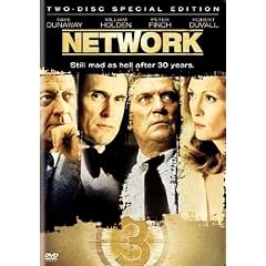 Amazon.com essential videoMedia madness reigns supreme in screenwriter Paddy Chayefsky's scathing satire about the uses and abuses of network television. But while Chayefsky's and director Sidney Lumet's take on television may seem quaint in the age of "reality TV" and Jerry Springer's talk-show fisticuffs, it's every bit as potent now as it was when the film was released in 1976. And because Chayefsky was one of the greatest of all dramatists, his Oscar-winning script about the ratings frenzy at the cost of cultural integrity is a showcase for powerhouse acting by Peter Finch, Faye Dunaway and Beatrice Straight (who each won Oscars), and Oscar nominee William Holden in one of his finest roles.